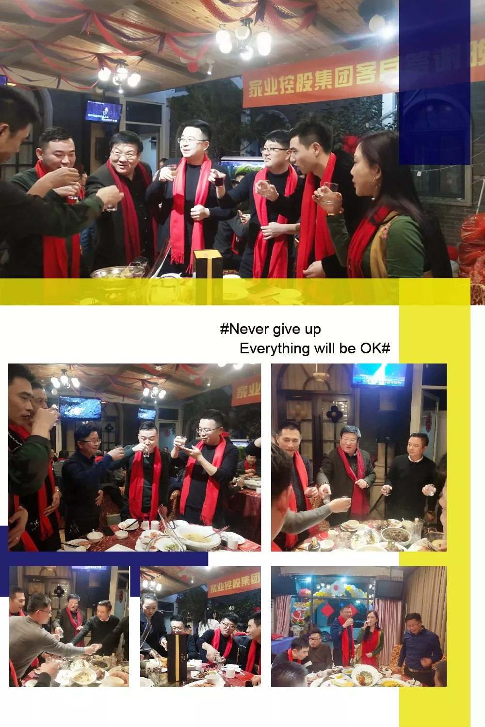答谢晚宴上,家业集团总裁沈坚强向在座核心客户合作伙伴进行了答谢发言: 非常感谢大家今天来参加本次的年终答谢会,我谨代表家业集团全体员工对大家的到来表示热烈的欢迎和衷心的感谢!今天,我们在此相聚,我要向给予我们长期支持和信赖的伙伴们表达一份真诚的感谢。这一年,你们辛苦了!谢谢你们! 2019年将是我们集团公司战略性的一年,面对新的环境和趋势,2019年我们将战略聚焦、资源聚合、立足主业谋发展,我们将以新的经营模式、专业的管理和服务,为大家提供一个更高效的发展平台,期望大家能创造更好的业绩,得到更高的回报!面对过去,我们家业人从心底里跟大家说一声感谢,面对美好的明天,我们会更加握紧老朋友的手,因为今后的路有你们的陪伴才能走的更好。今天,我们在此盘点全年的成果,共同期待我们的合作再次迈向一个更高的起点,这次答谢会目的是为了增进我们彼此间的了解,加深友谊、更好的服务大家,创造共赢。我坚信,有各位伙伴一如既往的支持,有我们全体同仁的不懈努力,我们的事业一定会更加美好,我们的前景也一定会更加广阔。 今天我们用最朴实的行动感谢大家,希望大家今天在这里敞开心扉,吃好、喝好、玩好!最后,在春节即将来临之际,借此机会给大家拜个早年,衷心祝愿在座的各位以及你们的家人一切顺利、身体健康、阖家幸福!祝愿我们的明天更加美好!谢谢大家!