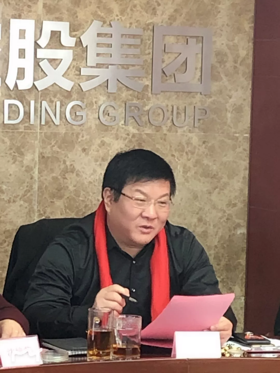 图为沈坚强总裁在集团年度总结大会上讲话